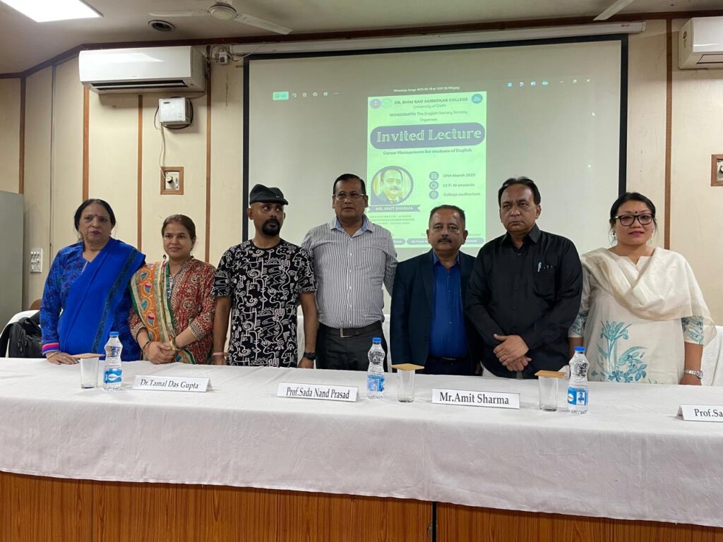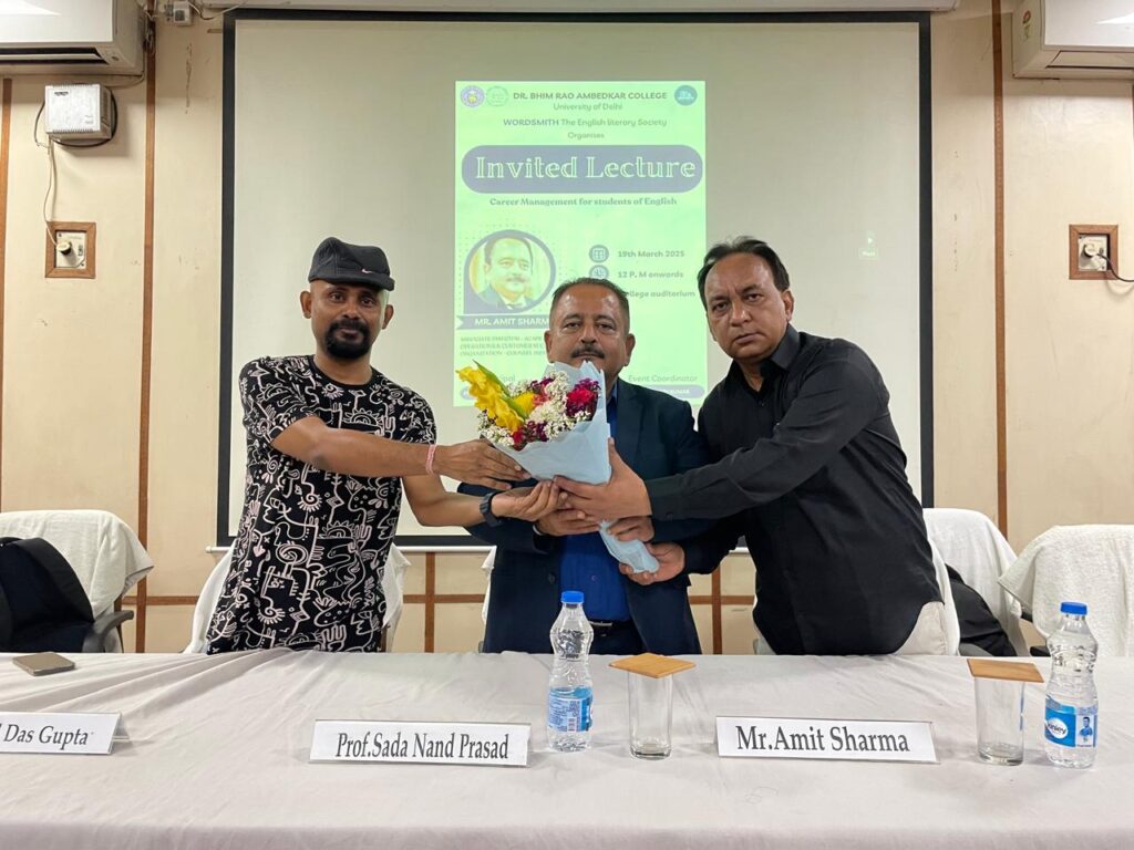 ब्यूरो, नई दिल्ली। डॉ भीम राव अम्बेडकर कॉलेज, दिल्ली यूनिवर्सिटी के कॉलेज ऑडिटोरियम में अंग्रेजी के छात्रों के लिए कैरियर प्रबंधन पर एक व्यावहारिक व्याख्यान सम्पन्न किया गया, इस व्यवहारिक व्याख्यान के वक्ता श्री अमित शर्मा (एसोसिएट डायरेक्टर – अकादमिक संचालन और ग्राहक सफलता, काउंसल इंडिया) का स्वागत किया गया। जिसमे आज के विकसित होते जॉब मार्केट में अपनी अंग्रेजी डिग्री का अधिकतम लाभ उठाने के लिए कैरियर के अवसरों, उद्योग के रुझानों और रणनीतियों पर जानकारी दी गयी। जिसे पेशेवर यात्रा को स्पष्टता और आत्मविश्वास के साथ नेविगेट करने में आपकी मदद करने के लिए डिज़ाइन किया गया है। आज के विकसित होते जॉब मार्केट में अपनी अंग्रेजी डिग्री का अधिकतम लाभ उठाने के लिए कैरियर के अवसरों, उद्योग के रुझानों और रणनीतियों का पता लगाने में कई छात्र-छात्रााओं ने इस व्यावहारिक व्याख्यान में भाग लिया।